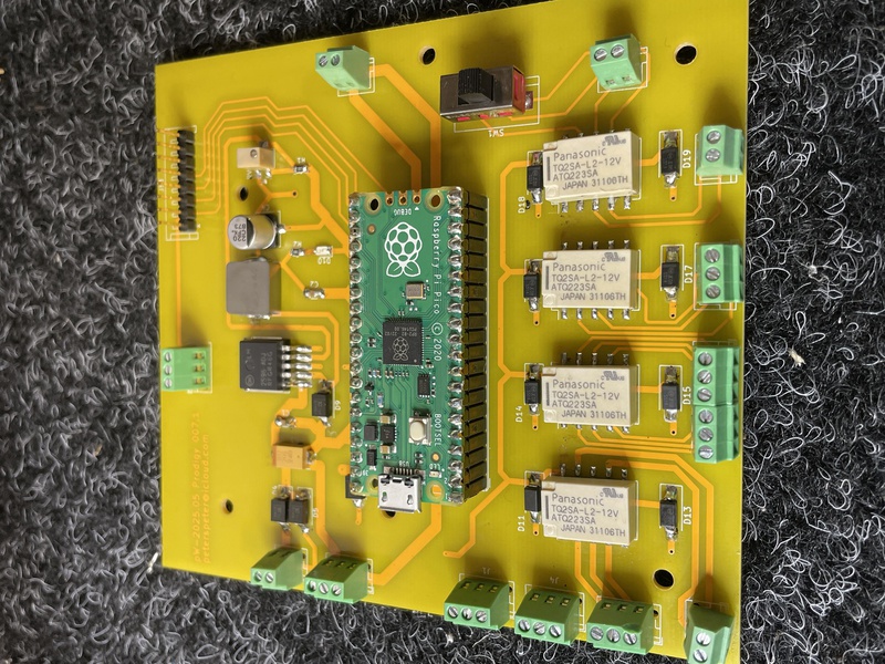 Designed in-house and manufactured in collaboration with Elecrow, this board is built around the Raspberry Pi Pico and features latching relays for secure and power-efficient switching. Each board is carefully assembled, tested, and integrated into professional-grade housings, ready for real-world applications.
